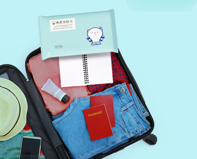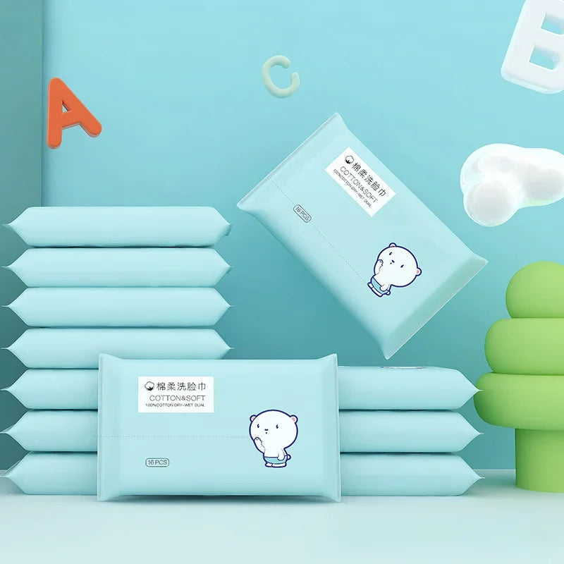 16pcs/bag Soft Face Tissue Pearl Pattern Disposable Face Towel Face Washing Travel Portable Cotton Tissue Wet Dry Multi Use Wipe