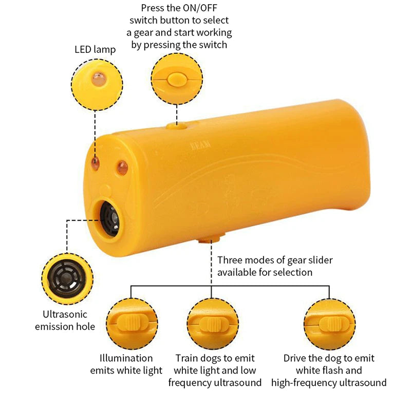3 in 1 et Dog Repeller Anti Barking Device Ultrasonic Dog Repeller Stop Bark Control Training Supplies With LED Flashlight